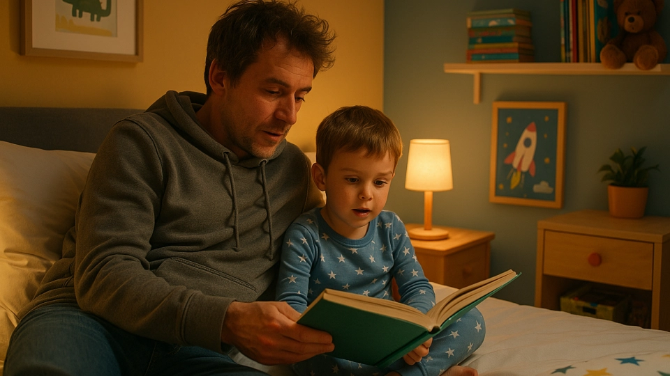Ритуалите преди лягане, като повтарящо се четене на глас, помагат на детето да разбере, че е дошло време за сън.
