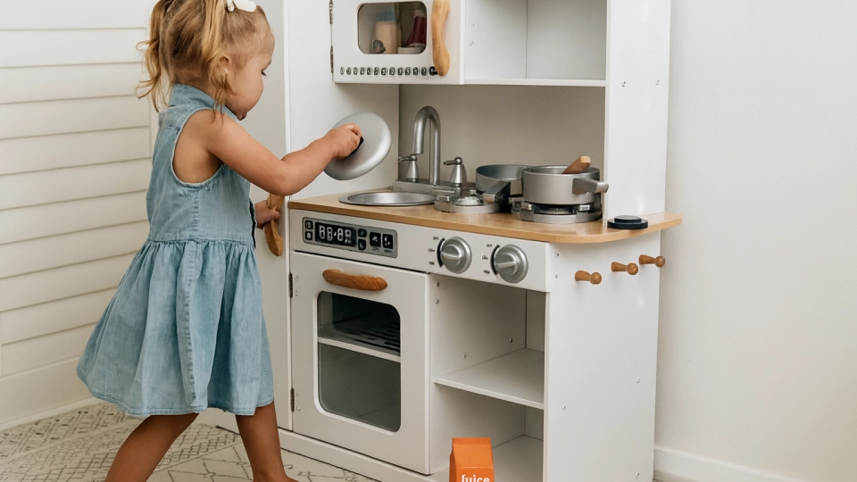 Идеалното време за купуване на кухничка е между 20‑ия и 30‑ия месец, когато детето започва да разбира принципа на „игра на родители“. Ако я купите твърде рано, кухничката може просто да стои в ъгъла. При по-големите деца, които вече с желание измислят истории и роли, си струва кухничката да бъде по-богато и разнообразно оборудвана и да включите децата и в избора й.