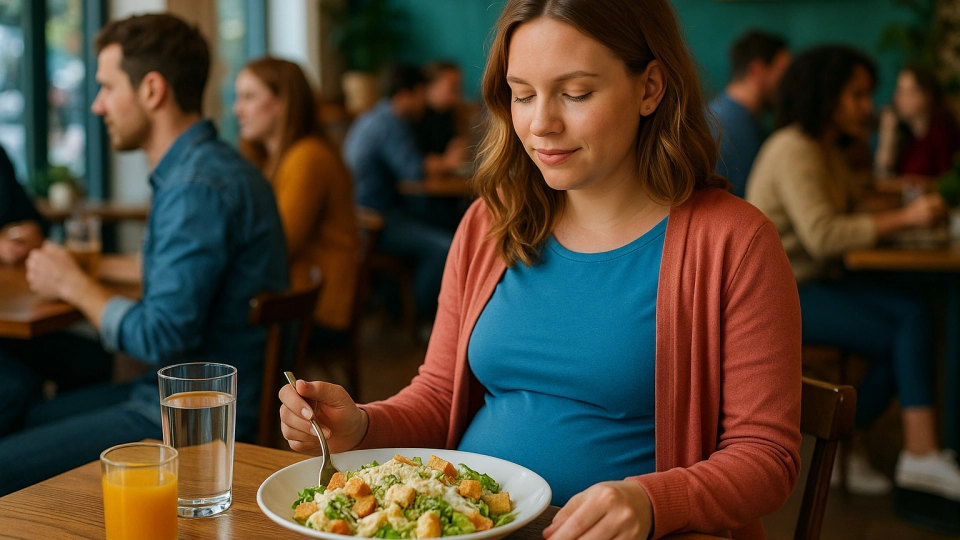 В края на третия триместър, преди раждането, е полезно да включите храни, които ви дават енергия, но не натоварват храносмилането – например пълнозърнести продукти, леки супи, смутита и подходящо термично обработени зеленчуци.