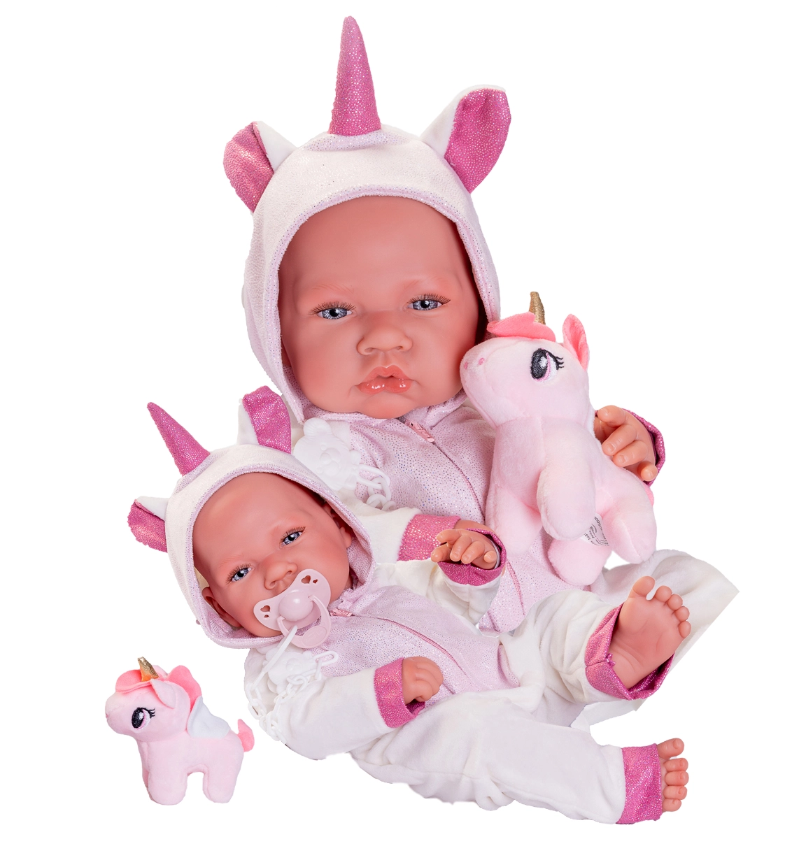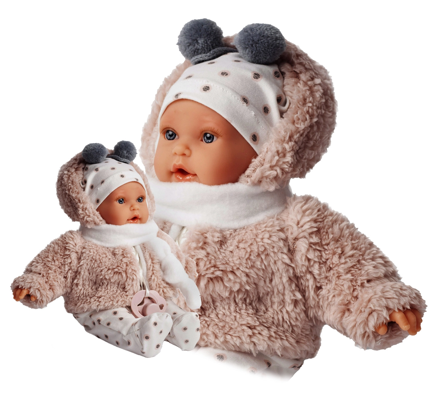 Изберете кукли с меко телце за гушкане или изцяло винилови кукли с подвижни крайници и реалистично личице. Нежният винил, приятен на допир, ръчно рисуваните черти, детайлните пръстчета и гънки по кожата превръщат всяка кукла Antonio Juan в истинско бебе; някои варианти имат и косичка и сладки аксесоари. Дрехички, одеялца, шишенца или биберон стимулират въображението и дългата креативна игра.