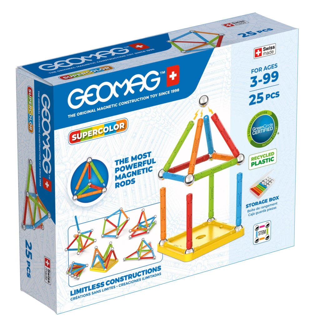 Магнитният свят на Geomag веднага ви въвлича в творчество и откривателство. Оригиналните магнитни конструктори Geomag комбинират магнитни пръчки, метални топчета и цветни панели в стабилни 3D конструкции, които развиват фината моторика, логическото мислене и пространственото въображение. Откривайте магнетизма, където всяко строене е креативно, образователно и изпълнено с забава – идеалната STEM играчка за деца.