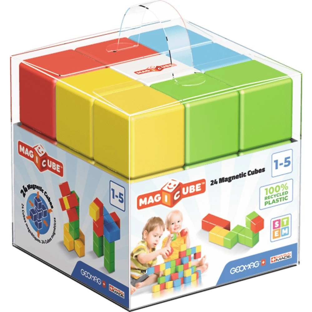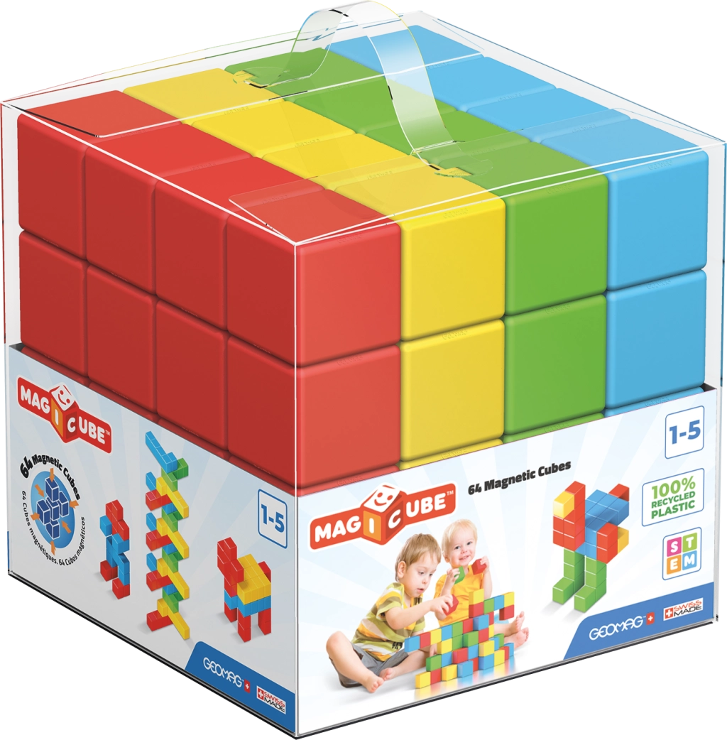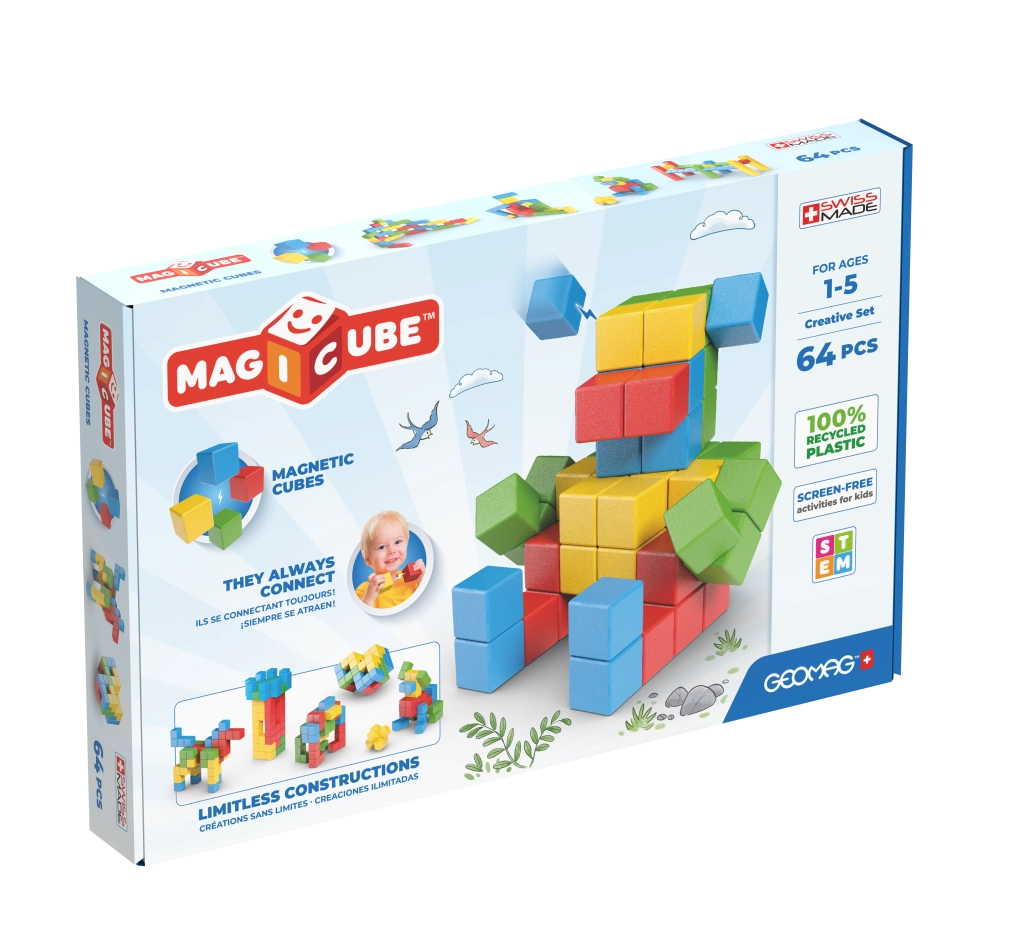 Изберете от популярните серии на Geomag: Magicube – магнитни кубчета за най-малките, Classic/Pro-L и Panels – пръчки, топчета и панели за напреднали, както и Mechanics и Mechanics Gravity за експерименти със зъбни предавки, ротация и гравитация. Geomag подкрепя STEM обучението, физиката, геометрията и креативния дизайн; изданията Supercolor и Glitter впечатляват с цветове и ефекти. Подбрани комплекти използват рециклирани материали. Лесно ще изберете правилния магнитен детски конструктор според възрастта, темата и броя части – от стартови сетове до мащабни комплекти. Сериите Classic, Panels, Pro-L и Mechanics надграждат една друга и позволяват разширяване и комбиниране на моделите, докато Magicube е идеален за самостоятелно строене с магнитни кубчета. С Geomag получавате издръжлива изработка, стабилни конструкции и безкрайни възможности за строене за малки и големи строители.