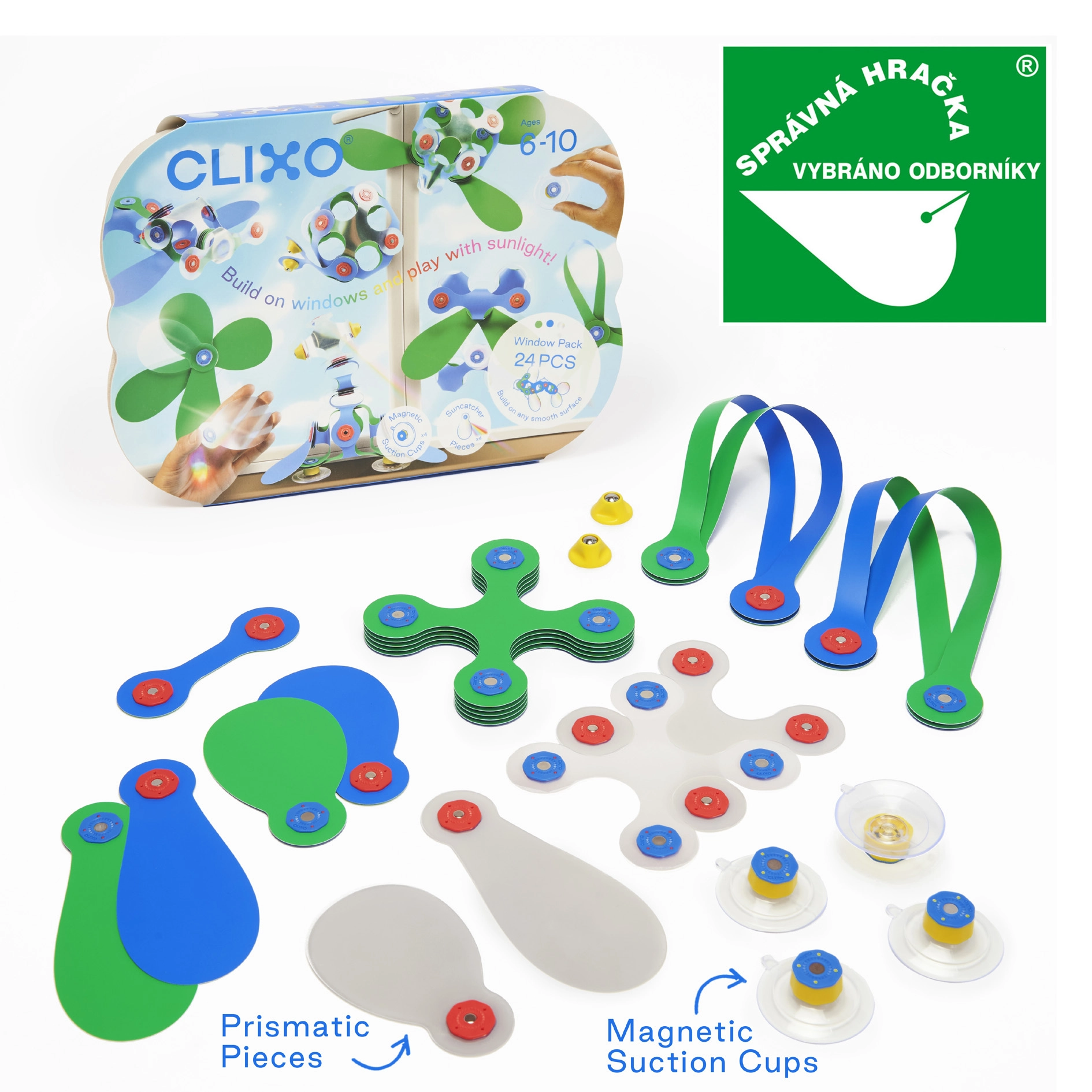 Леките, компактни и пътнически комплекти от еластични форми позволяват безкрайни комбинации – от простички идеи до сложни конструкции. Благодарение на умно разположените магнити творенията надеждно запазват форма дори при огъване, елементите са приятни на допир и без остри ръбове. Тези магнитни играчки Clixo са идеални както за самостоятелна, така и за съвместна игра и за свободно творчество без ограничения.