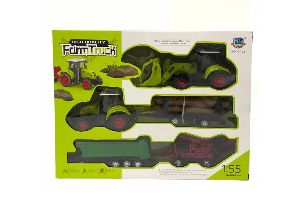 Играта на ферма развива фината моторика, координацията око–ръка и въображението. Независимо дали търсите детски трактор с ремарке/платформа, комбайн със светлина и звук, товарач, балираща машина или цял комплект фермерски превозни средства с животни, ви очаква креативна игра за момчета и момичета от 3 години нагоре. Изберете фермерски превозни средства, които ще обогатят всяка колекция и ще превърнат килима в поле, ливада и двор.
