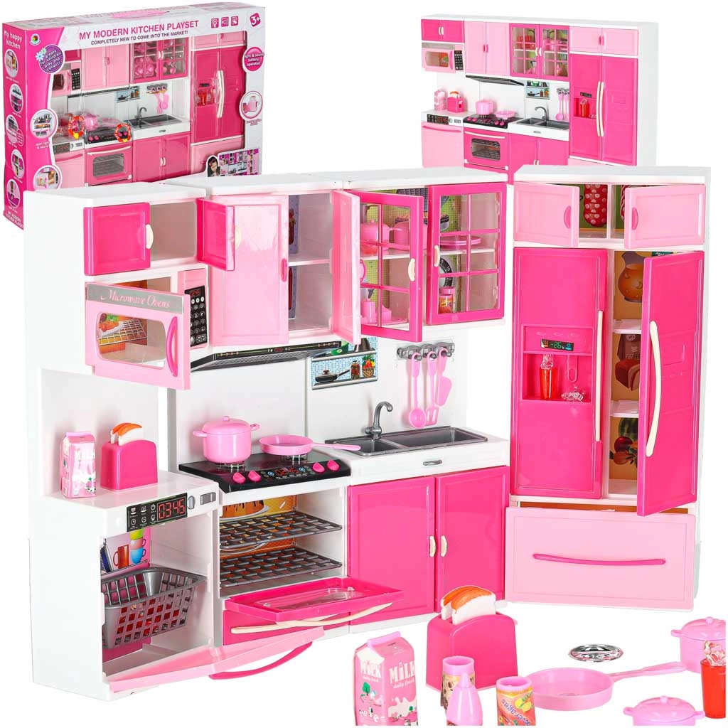 Изберете дървена кухничка за кукли с издръжлива и приятна повърхност или лека пластмасова кухничка за кукли за лесно пренасяне. Някои комплекти имат отварящи се вратички, въртящи се копчета, мивка с кран, микровълнова или хладилник, за да бъде имитацията на готвене възможно най-достоверна. В предложението ще намерите компактни кухненски кътове, ъглови конфигурации и мини кухнички, които са подходящи за кукли с различни размери и чудесно допълват къщичките за кукли.