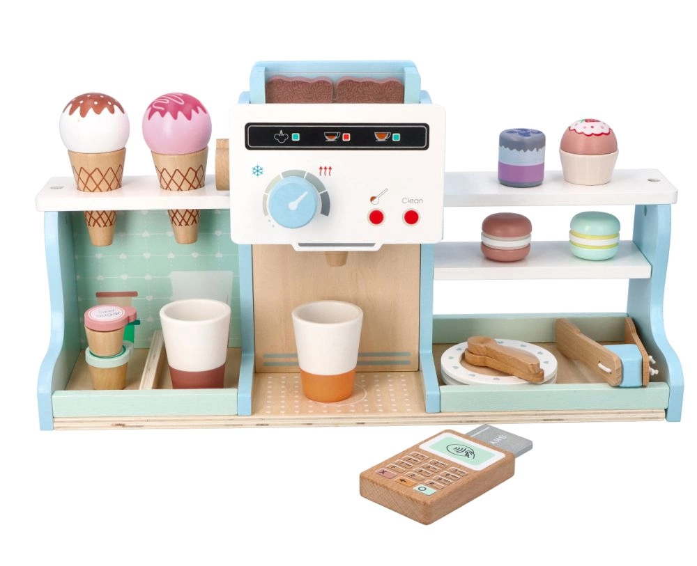 Можете да избирате между дървени и пластмасови варианти с качествена изработка, безопасни заоблени ръбове и устойчива конструкция. Не липсват комплект етикети и ценоразпис, платежна карта, касови бележки, рафтове и щандове – с една дума, всичко, от което детски супермаркет, касов комплект или детски магазин се нуждае за креативно и дълготрайно забавление у дома и в детската градина.