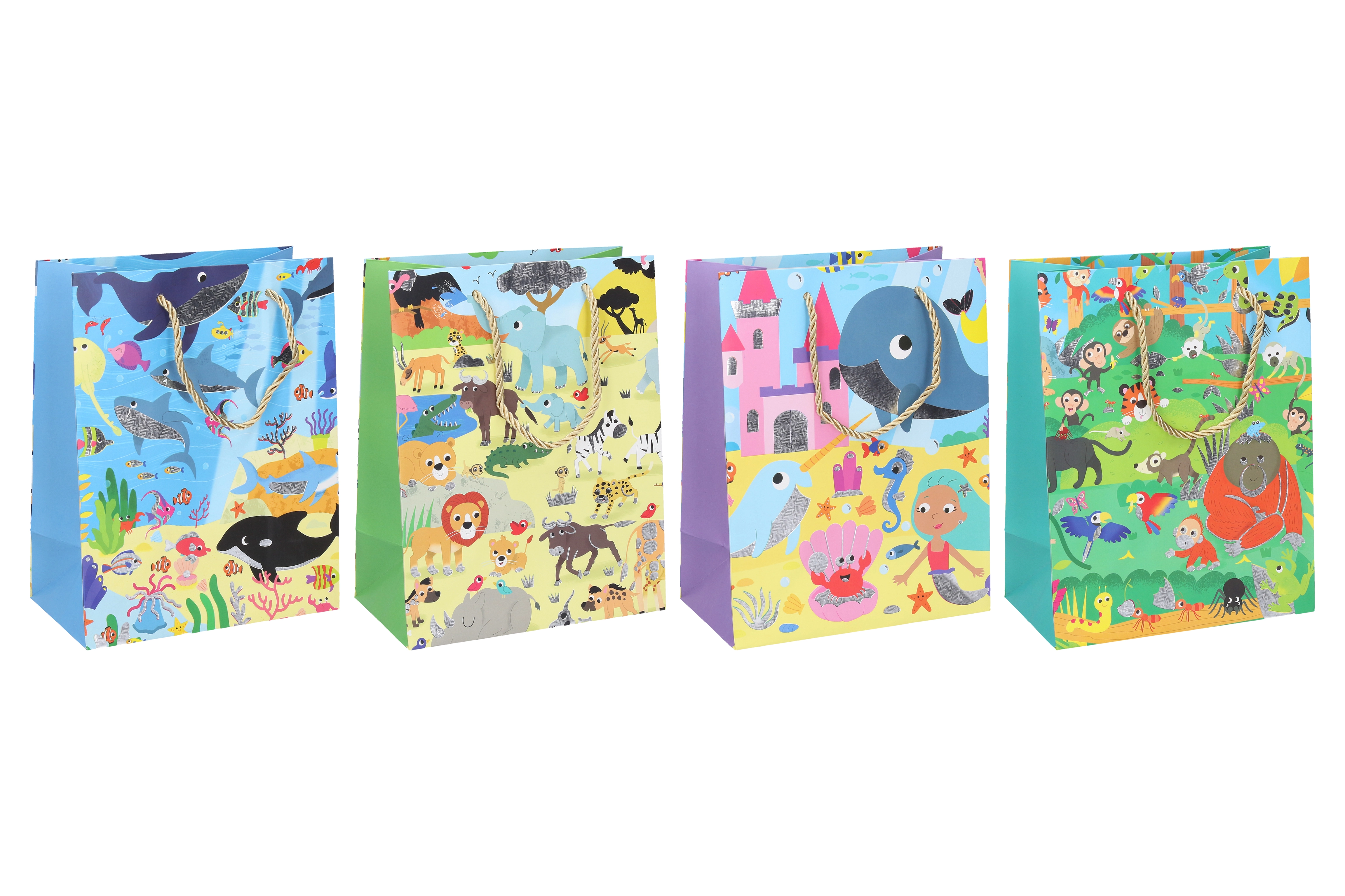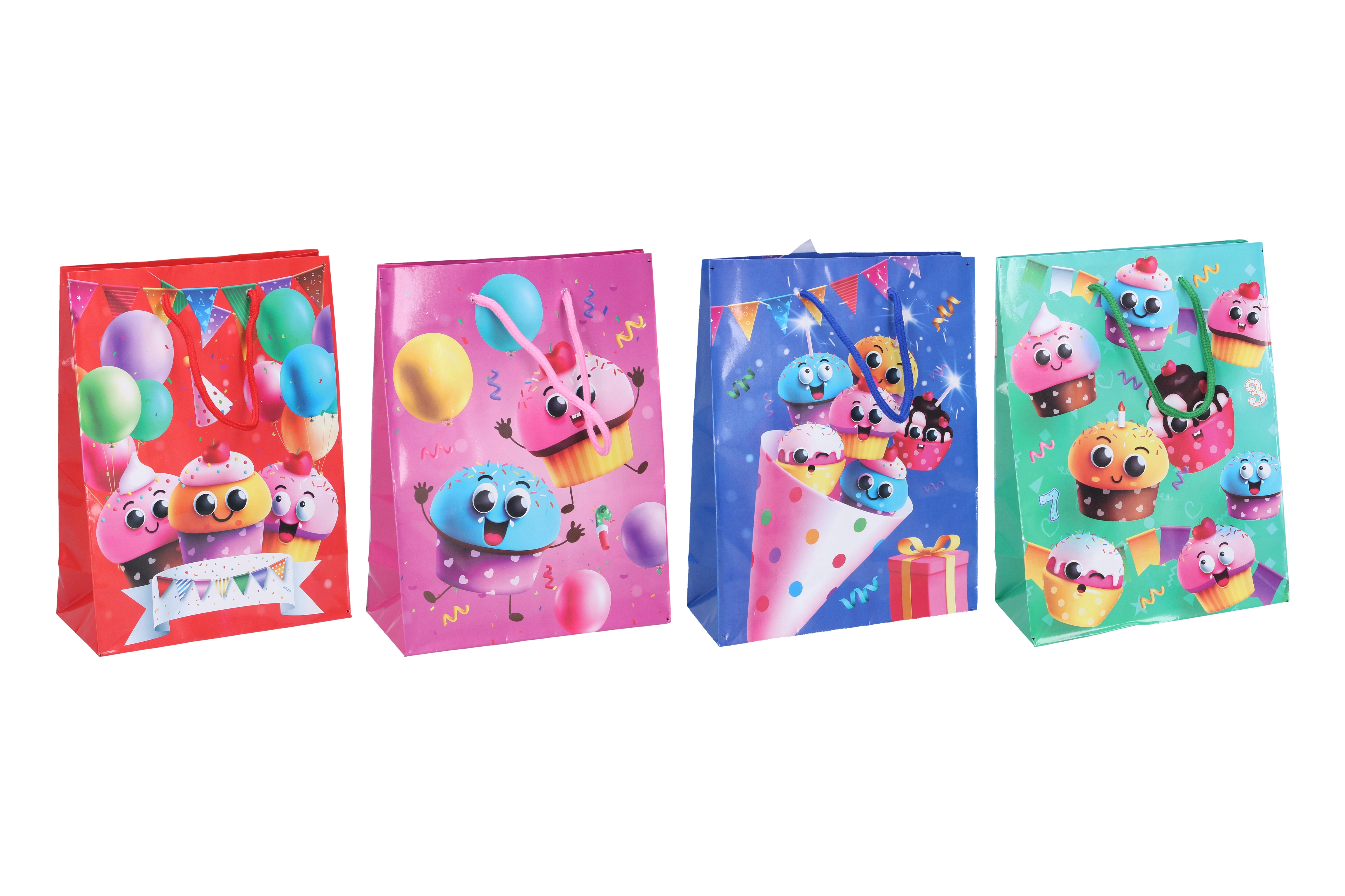Функционалност и визия вървят ръка за ръка: хартиени торбички с различна граматура и ламинации с здрави дръжки от връв или панделка, издръжливи торбички за подаръци с подсилено дъно и пликове със стягащ шнур, самозалепващо се затваряне или цип за сигурно опаковане. Еко решенията включват крафт и рециклируеми материали, както и многократно използваеми текстилни пликове. За детски партита, сватбени подаръчета и празнични моменти тук ще намерите рожденденски и коледни подаръчни торбички, малки торбички за подаръци, пликове за лакомства и парти пакети. Налични са детски мотиви (динозаври, еднорози, балони), елегантни едноцветни варианти без печат и дизайни с модерен печат – лесно ще съчетаете цветовете и темата на празника.