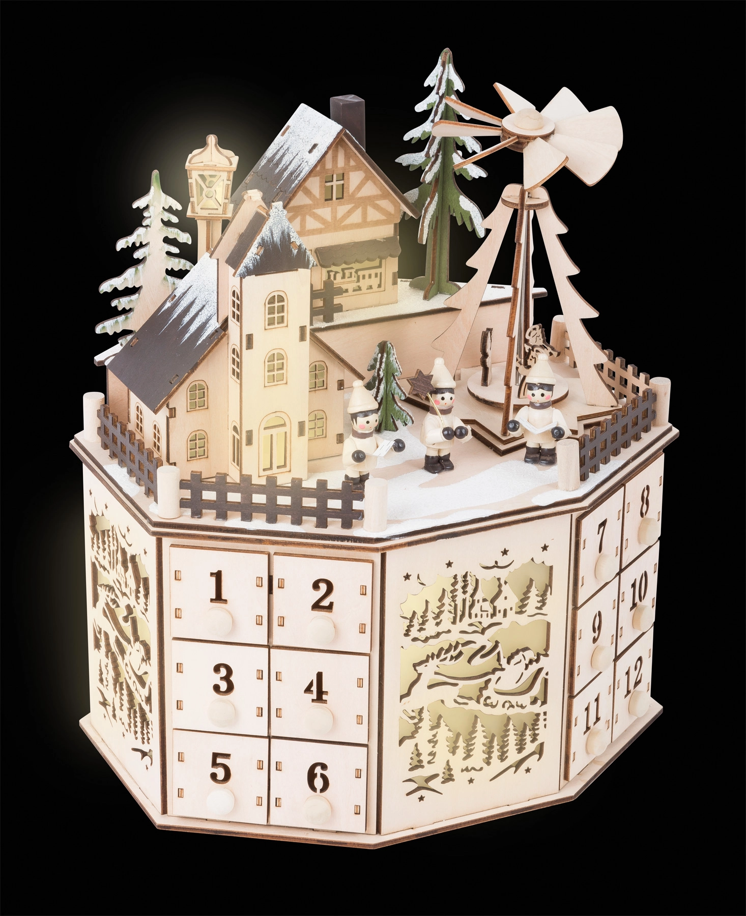 Изберете адвент календар за деца според своя стил: дървен адвент календар с къщички, текстилен адвент календар с джобчета, хартиен адвент календар с илюстрации или пълним адвент календар за ваши собствени изненади. Многократно използваемите и устойчиви варианти щадят природата, са издръжливи и готови да издържат много сезони. Използваните материали са приятни на допир и подходящи за детската стая; популярните мотиви (приказни теми, скандинавски дизайн, минималистични шарки) лесно се съчетават с останалата коледна украса. При избора съобразете размера на джобчетата и вида на подаръчета, които искате да поставите; за по-малки пространства е подходящ висящ текстилен календар, а за по-изразителна декорация изберете дървен календар – някои модели предлагат и нежно LED осветление за вълшебна атмосфера. DIY и пълнимият адвент календар насърчават креативността и общите семейни ритуали, докато готовите хартиени календари радват с бърза употреба. Независимо дали залагате на рустик, скандинавски или модерен стил, адвент календарите за деца ще се превърнат в красива коледна украса и любима традиция.