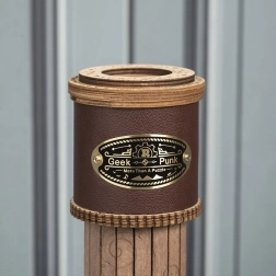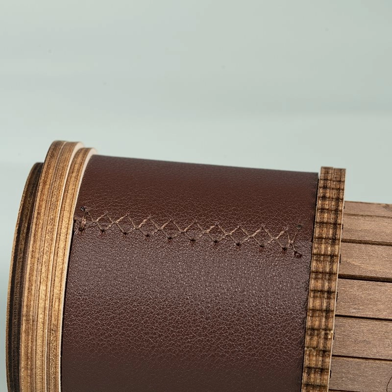 Дървеният тубус с кожена лента и метална табелка придава на модела винтидж визия, която ще краси всеки интериор.