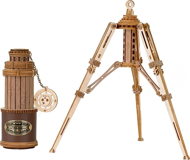 Сглобете собствен дървен модел телескоп от серията ROBOTIME Rokr Curious Discovery, който може да се използва със статив или без него. Този модел е не само красив декоративен елемент, но и подпомага развитието на фината моторика и въображението.