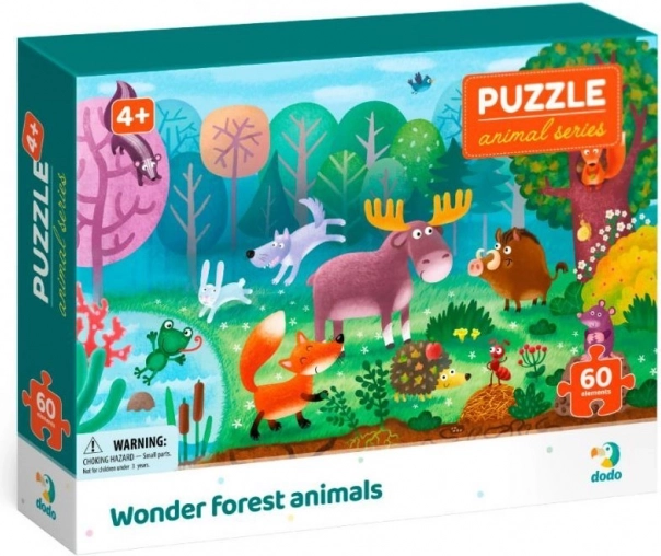 Този цветен пъзел с мотив горски животни е чудесен начин детето да се запознае със света на природата. Благодарение на 60-те части пъзелът предлага идеално ниво на предизвикателство за предучилищни и по-малки ученици и подпомага логическото мислене и възприемането на детайлите.