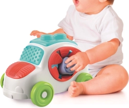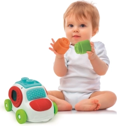 Тази цветна кола за вмъкване с меки кубчета CLEMMY е създадена за най-малките откриватели. Децата могат безопасно да стискат кубчетата, да ги подреждат на кули и да ги вмъкват в съответните отвори на капака, като така развиват осезанието, координацията око–ръка и логическото мислене. Мекият, нетоксичен материал е приятен на допир и лесен за поддръжка.