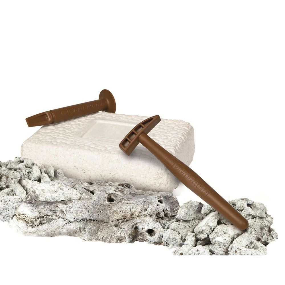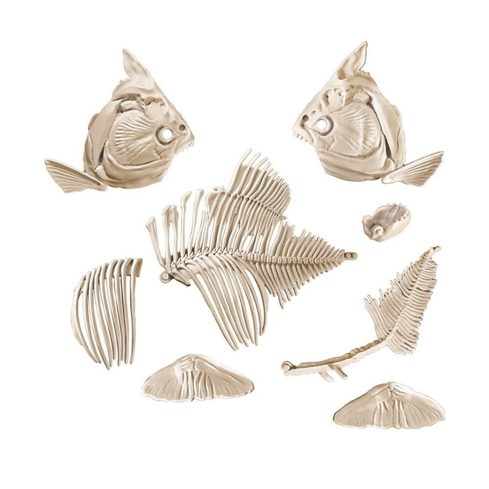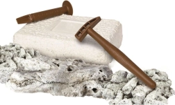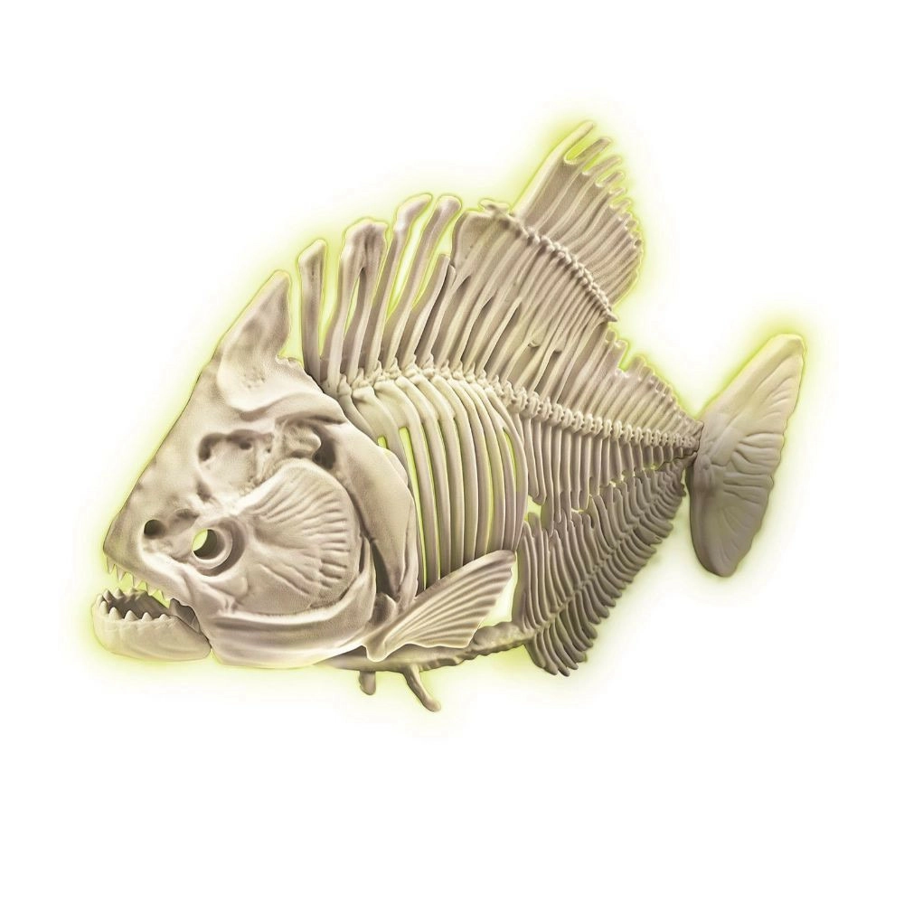 Откривайте света на палеонтологията стъпка по стъпка. С помощта на чукче и длето внимателно обработете блока пръст и разкрийте костите, от които ще сглобите реалистичен скелет на пираня. Благодарение на специалния флуоресцентен материал скелетът след осветяване свети в тъмното, което придава на откриването неповторима атмосфера.
