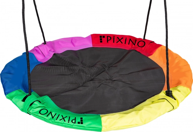 Изживейте незабравими моменти, изпълнени със забавление и уют, с люлката Pixino щъркелово гнездо. Този люлеещ се кръг е проектиран да осигури максимална безопасност за децата, като същевременно ги забавлява със своя пъстър дизайн. Седалката е изработена от качествен полиестер, който издържа на всякакви атмосферни условия.