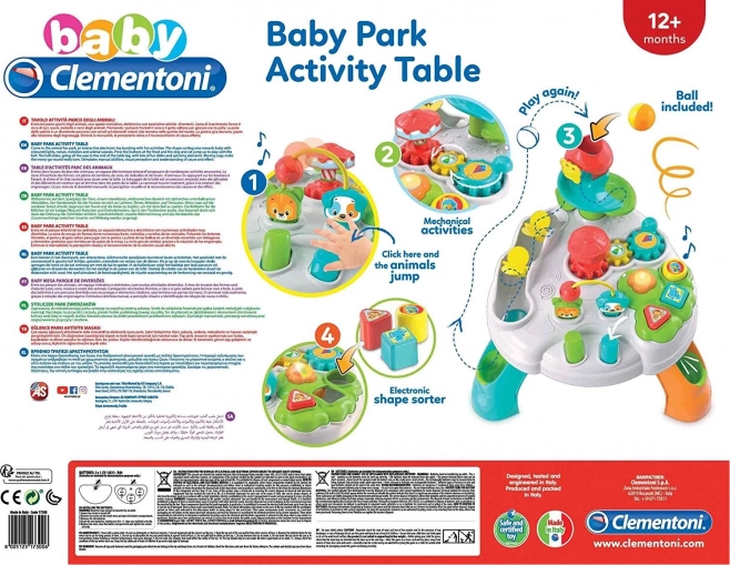 Масата Activity Park е проектирана като малък увеселителен парк, където децата се учат чрез игра. С въртене на зъбните колела се задвижва въртележката, при натискане на бутоните фигурките оживяват, а пистата за топчета с пързалки завършва със забавно спиране в краката на масата. Цветните елементи, светлините и звуците привличат вниманието и подпомагат концентрацията.