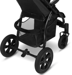 Големите безподдръжкови колела с издръжлив протектор и пълно окачване се справят гладко с павета и неравности. За по-сигурно управление са налице блокировка на предните колела и централна крачна спирачка. Благодарение на 9-степенното регулиране на дръжката количката се адаптира към вашия ръст. Безопасността е осигурена от 5‑точкови колани с меки подплънки и рефлекторни елементи на сенника, предпазната дръжка и поставката за крака. Количката отговаря на стандарта EN 1888.