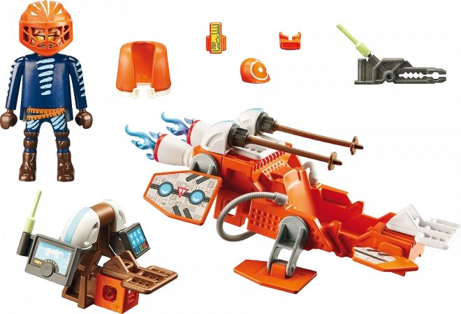 Пилотът се впуска да изследва космоса със своя спийдър, готов да преодолее всякакви препятствия. Големите щипки гарантират, че дори ако нещо се повреди, приключението може да продължи смело. Комплектите PLAYMOBIL не само са забавни, но и практично опаковани в декоративни кутийки, които лесно могат да се надпишат с имена и да спестят опаковъчна хартия.
