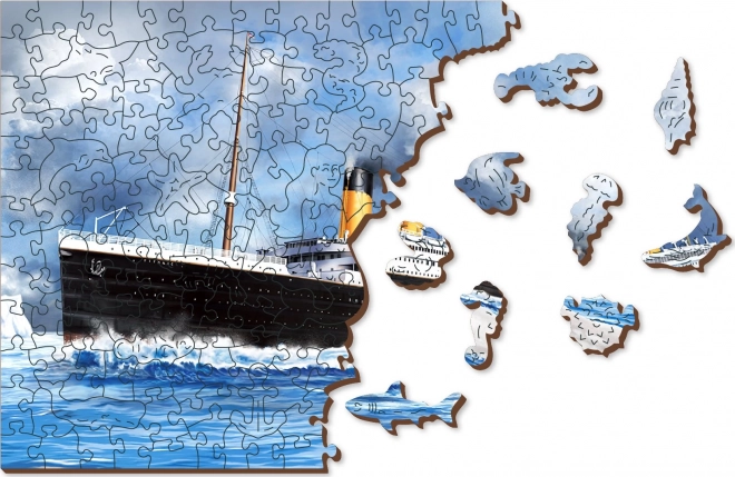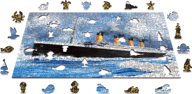Този премиум дървен пъзел, вдъхновен от кораба Титаник, съчетава релакс и умно предизвикателство. Благодарение на разнообразните специални форми на елементите – от животни и сгради до тематични символи – подреждането ще ви увлича от начало до край. Част от елементите могат да се използват и като малки самостоятелни фигурки.