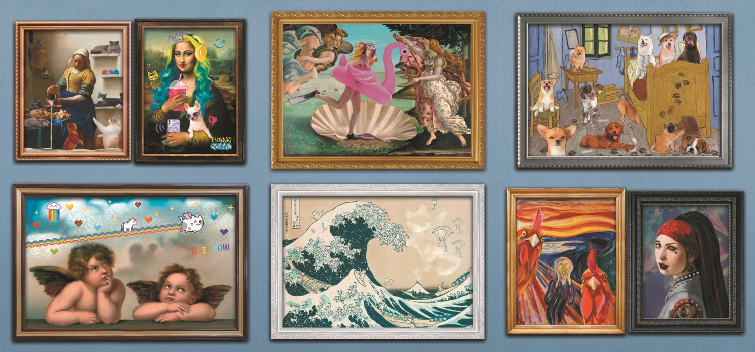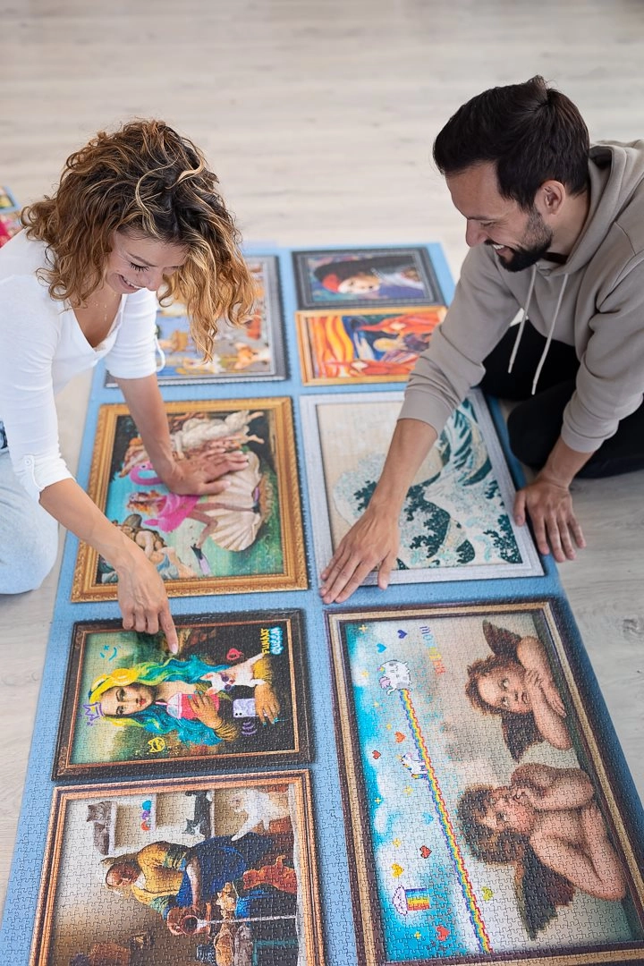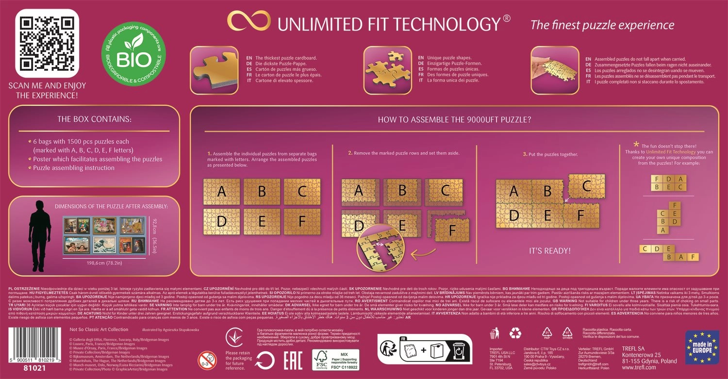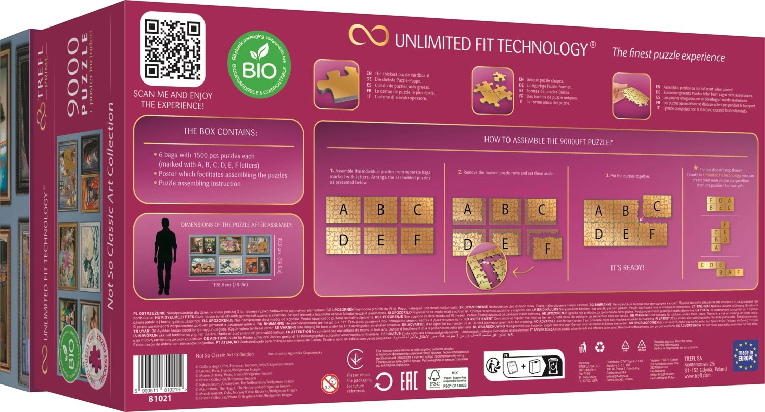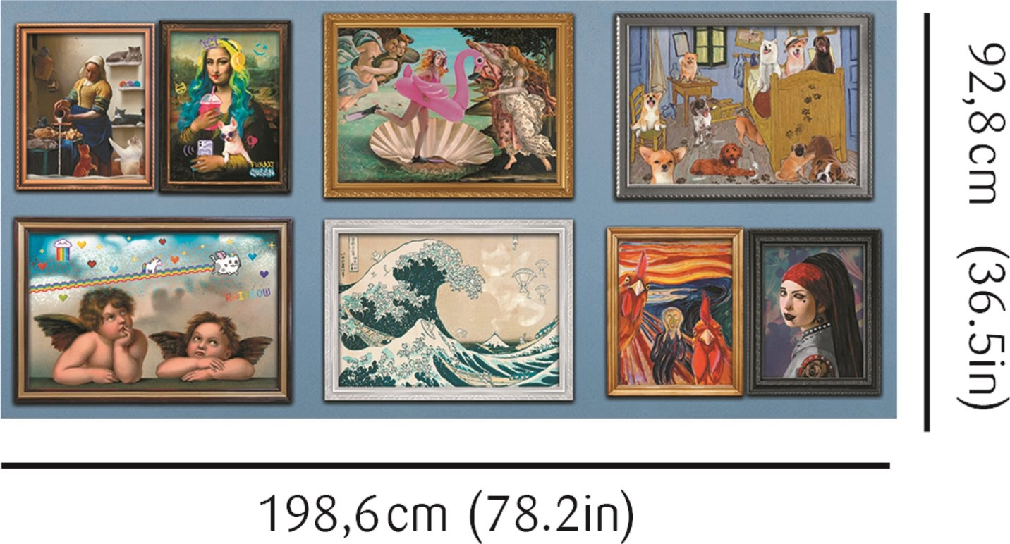Шест пъзела по 1500 части могат да се съединят в гигантско изображение според приложения плакат или да развихрите въображението си и да създадете собствена композиция!
