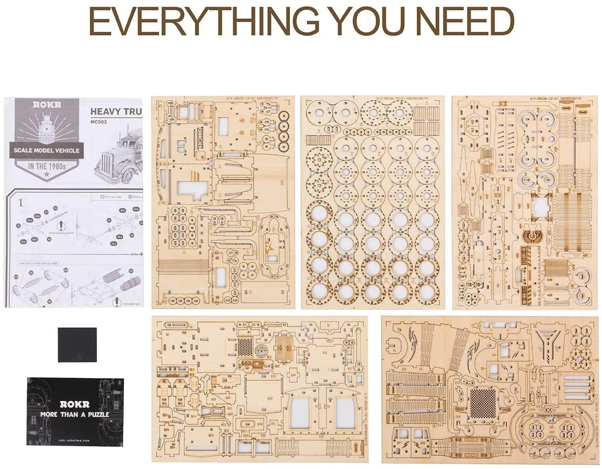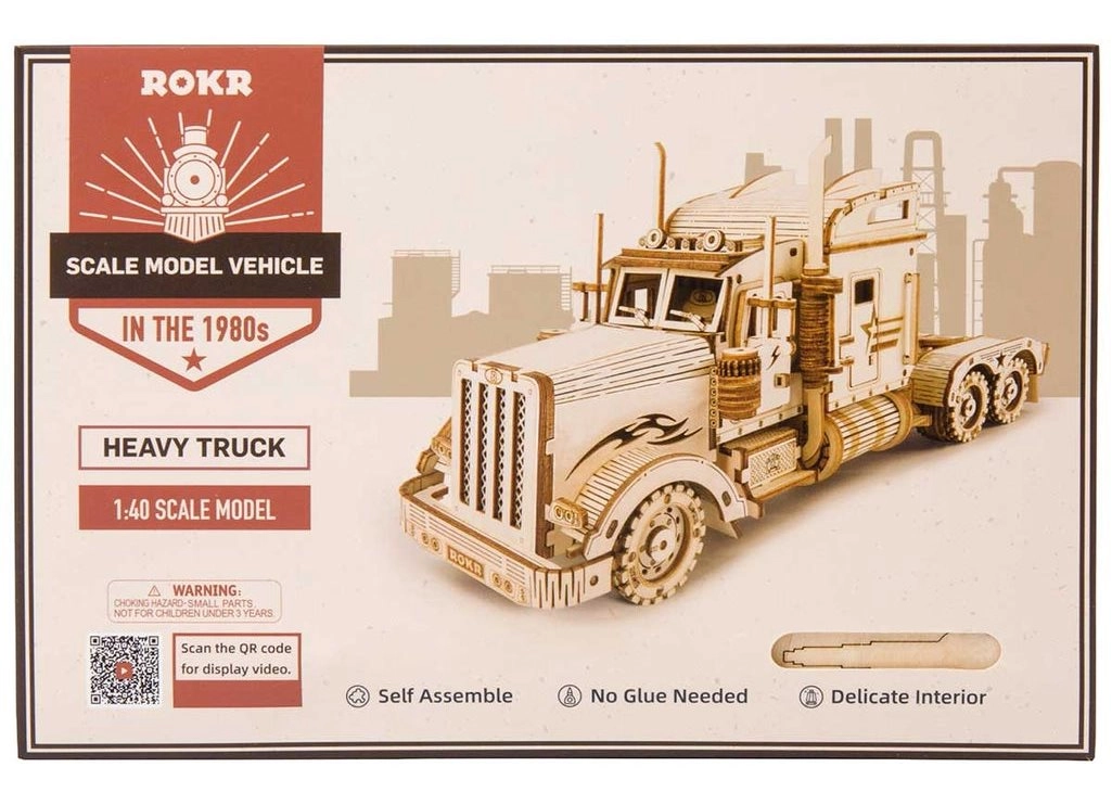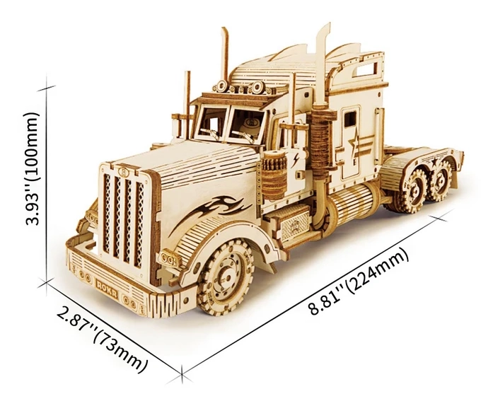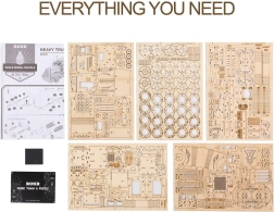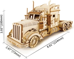Този детайлен и прецизно изработен модел на камион е чудесен пример за майсторска изработка. Изработен е от елементи, изрязани с лазер от 2 мм липов шперплат, които лесно се отделят от подложката. Целта е да развива вашето техническо мислене, въображение и фината моторика.