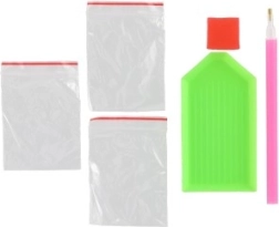 - Пълно оборудване – платно с шаблон, писалка, тавичка, восък и комплект камъчета.