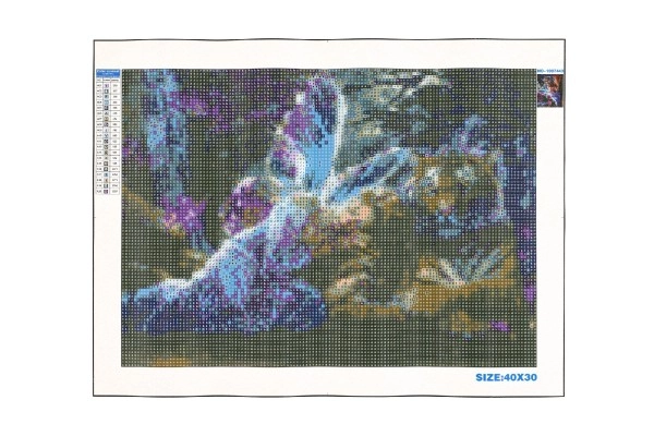 Креативен комплект за диамантено рисуване с мотив фея с пеперудени крила с размер 30 × 40 cm, който носи часове релакс и удоволствие от творенето. В опаковката ще намерите пълен комплект – платно с шаблон, апликатор, тавичка, восък и цветни камъчета за лесно и ефектно завършване на картината.