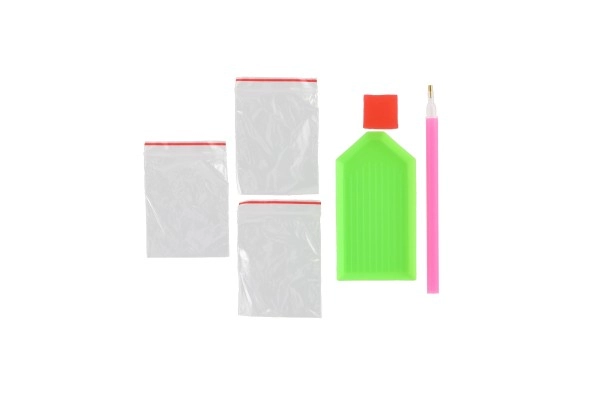 Открийте успокояващия свят на диамантеното рисуване. С помощта на апликационната писалка поставяте камъче по камъче на обозначените места върху самозалепващото платно и създавате сияйна мозайка с мотив фея с пеперудени крила. Процесът е интуитивен, не изисква специални умения и е идеален както за начинаещи, така и за напреднали.