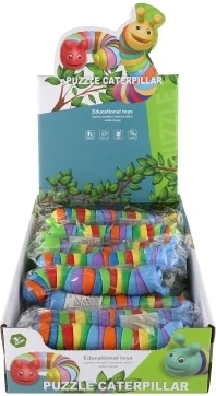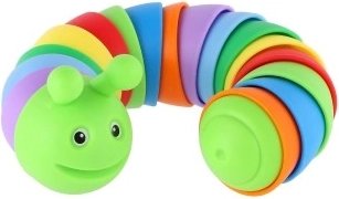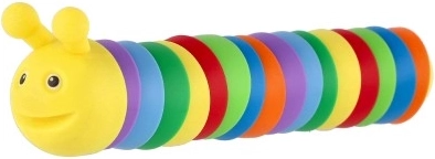 Гъвкавата цветна гъсеница ще се превърне в любима играчка на вашите деца. Благодарение на приветливия дизайн и пъстроцветните сегменти е идеална за развитие на фината моторика и зрителното възприятие. Гъсеницата лесно се огъва във всички посоки, което осигурява забавление и насърчава креативността.