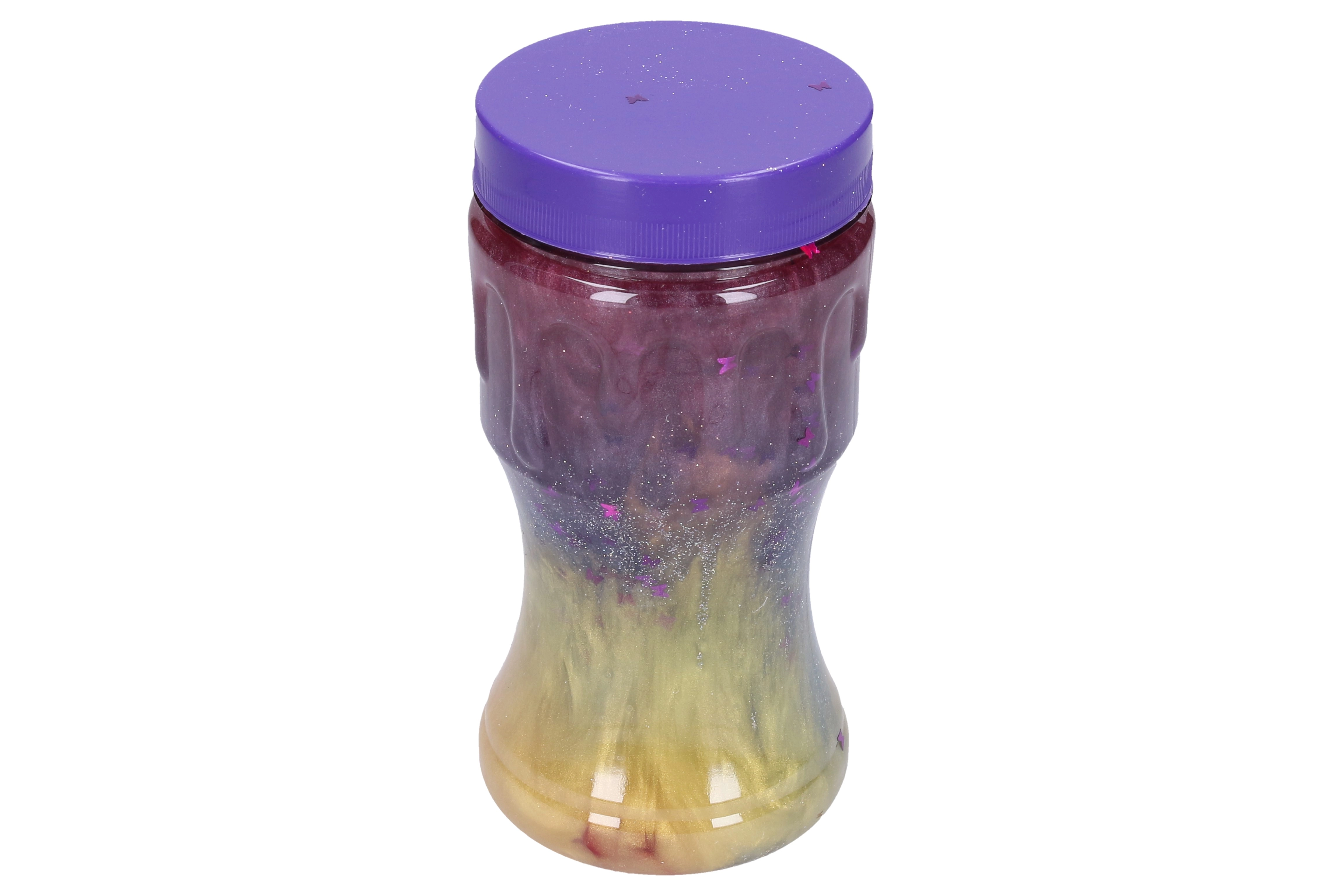 Многоцветни вихри с брокат и звездички създават зашеметяващо визуално представление при всяко движение на слайма.