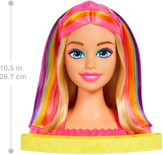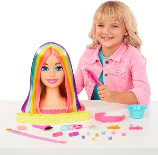 Тази стилизираща глава BARBIE с цветни мелири предлага безкрайни възможности за прически и игриви експерименти. С помощта на гъбка и вода децата лесно променят цвета на кичурите или устните според температурата – забавна магия, която стимулира въображението и прави играта винаги нова.