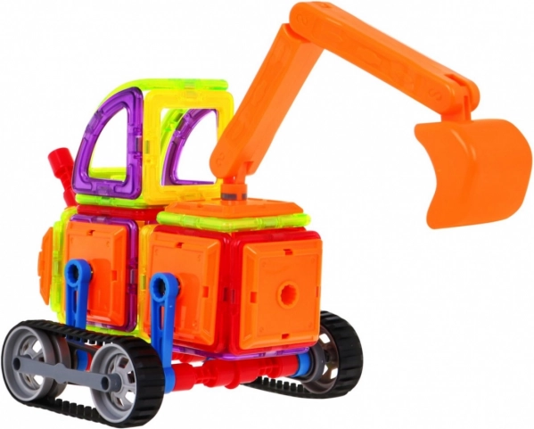 Магическите магнитни конструктори са идеален избор за деца от три години. Този комплект от 78 части е цветно разнообразен и съдържа 29 магнитни елемента, които могат свободно да се комбинират с пластмасови части. Комплектът включва функционални колела и багерно рамо, което позволява сглобяване на модели на строителни машини. Ясните илюстровани инструкции вдъхновяват децата за креативно строене.