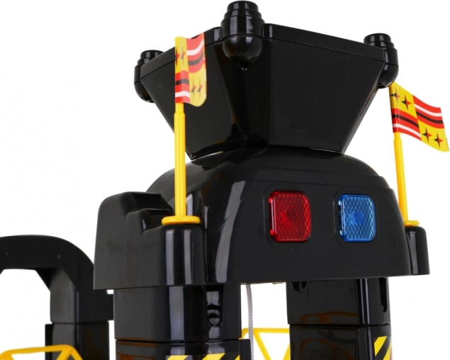 Детският паркинг гараж предлага вълнуващо игрално пространство с пет нива, до които се стига с асансьор и пързалки. Най-долният етаж включва автомивка, автосервиз и бензиностанция. Следващите нива служат като паркинг за коли, а най-отгоре има място за хеликоптер с подвижен асансьор със светлинни ефекти, захранван от три батерии AA (не са включени в комплекта).