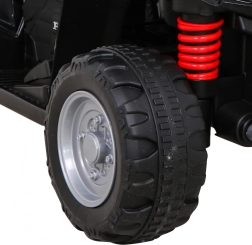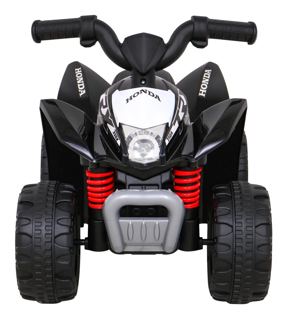 Стилно детско електрическо ATV, вдъхновено от модела HONDA 250X TRX, впечатлява с реалистични детайли, LED предни светлини, клаксон и удобно седало от еко кожа. Леката и издръжлива конструкция с пластмасови колела е идеална за първи карания у дома и на двора.