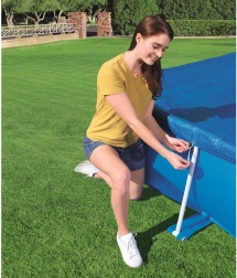 Благодарение на въжетата покривалото се закрепва лесно към басейна, което гарантира неговата стабилност дори при ветровито време.