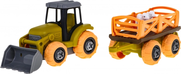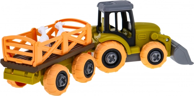 Този здраво изработен трактор със сваляемо ремарке е идеален за деца от три години нагоре. Доставя се вече сглобен, а основното му предимство е, че може да се разглобява и отново сглобява с помощта на включената отвертка. Не се нуждае от батерии, затова е безопасен и лесен за използване. Детайлите на играчката включват: