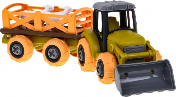 Играчката включва сваляемо ремарке и подвижна кофа за реалистични фермерски сцени.