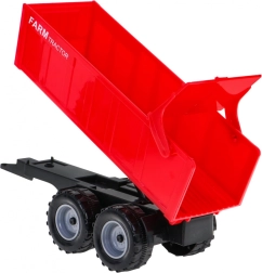Червено ремарке с ръчно накланяне позволява реалистичен превоз на товар и забавно разтоварване.