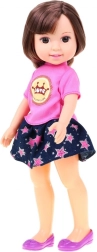 Комплектът включва рокля, тениска и пола, така че децата могат да сменят визията на куклата според настроението си и да развиват усет към модата.