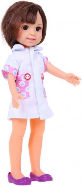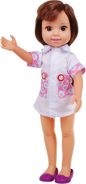 Тази внимателно изработена кукла в ролята на медицинска сестра стимулира децата към имитационна игра и ги учи на емпатия и грижа за другите. Благодарение на реалните аксесоари като стетоскоп, термометър и спринцовка, малките лекари могат да пробват основни прегледи и да създават свои собствени медицински истории.