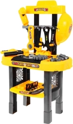 Открийте креативния свят на малките майстори с този голям детски работен плот. Комплектът включва 23 части, сред които каска, бормашина, чукче, зъбни колела и други аксесоари. Благодарение на лесния монтаж, практичните места за съхранение и CE сертификат това е идеална играчка за деца от 3 години – развива фината моторика, креативността и сръчността.