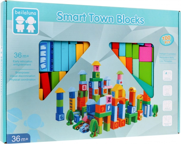 Открийте магията на класическата игра в модерно изпълнение: дървени кубчета „Град“ със 100 части за деца от 3 години. Изработени от качествено дърво, с безопасни бои и гладки ръбове, те подкрепят креативността, фината моторика и пространственото въображение. Различните форми и цветове и включената картинна инспирация приканват към строене на къщи, кули и превозни средства.