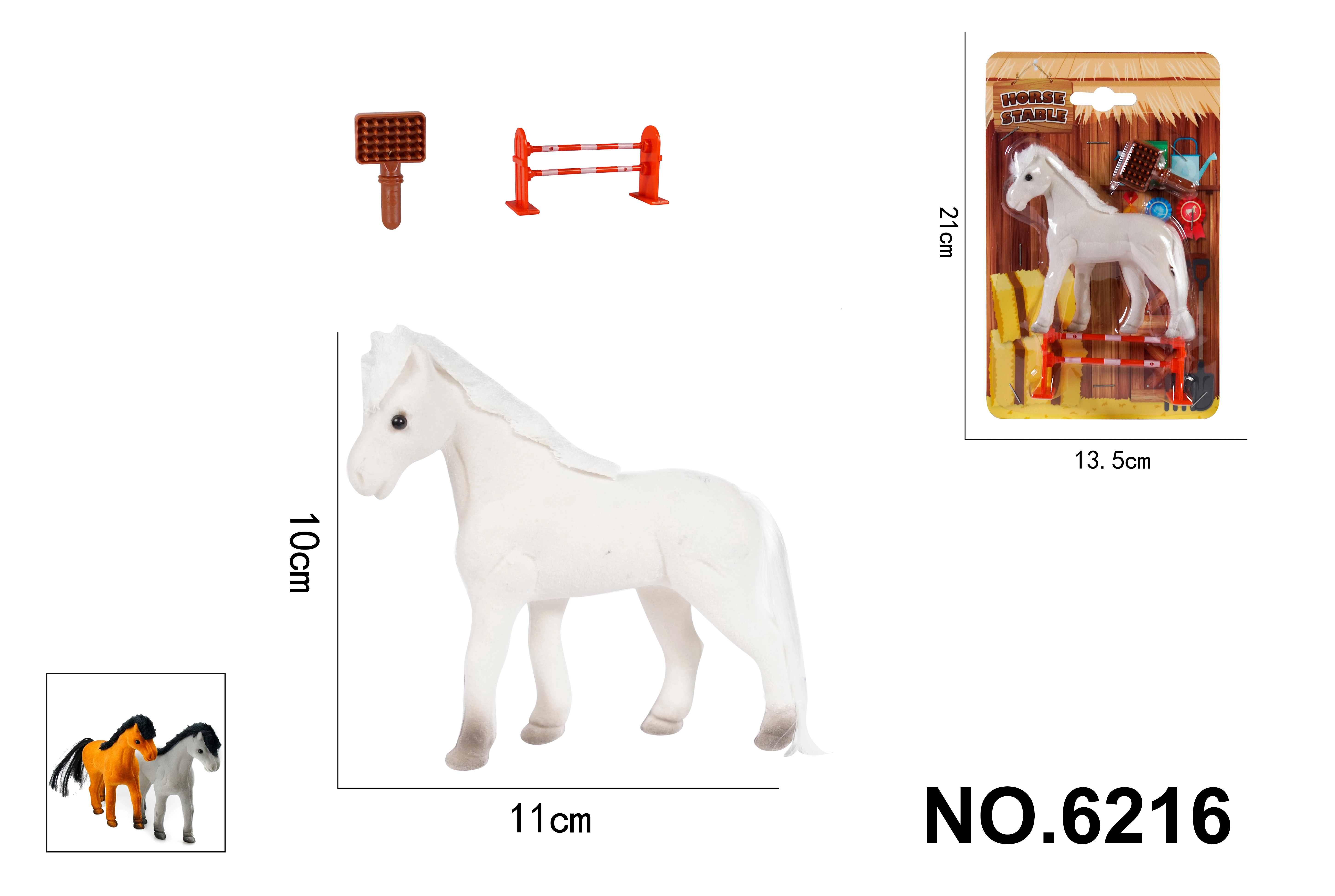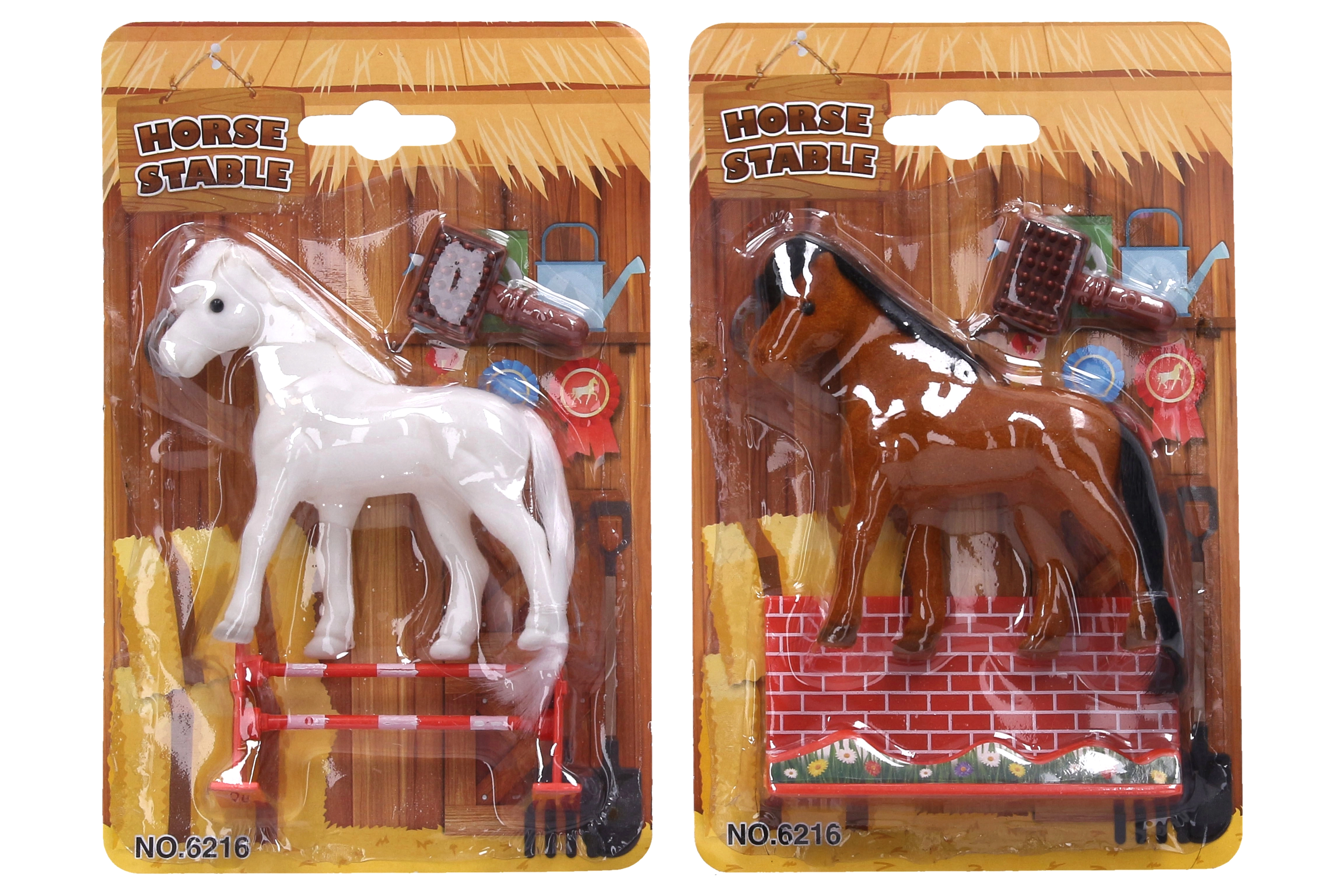 - Съдържанието на комплекта включва кон, четка и препятствие, което позволява безкрайни игрови сценарии.