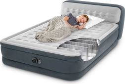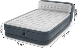 Двуслойното надуваемо легло INTEX с технология Dura-Beam Fiber-Tech предлага голяма спална площ, интегрирана табла и вградена електрическа помпа за бързо надуване и изпускане. Височината от пода 46 cm и повърхността от мек велур гарантират комфорт, стабилност и изчистен вид. Максималното натоварване 272 kg осигурява надежден сън за двама.