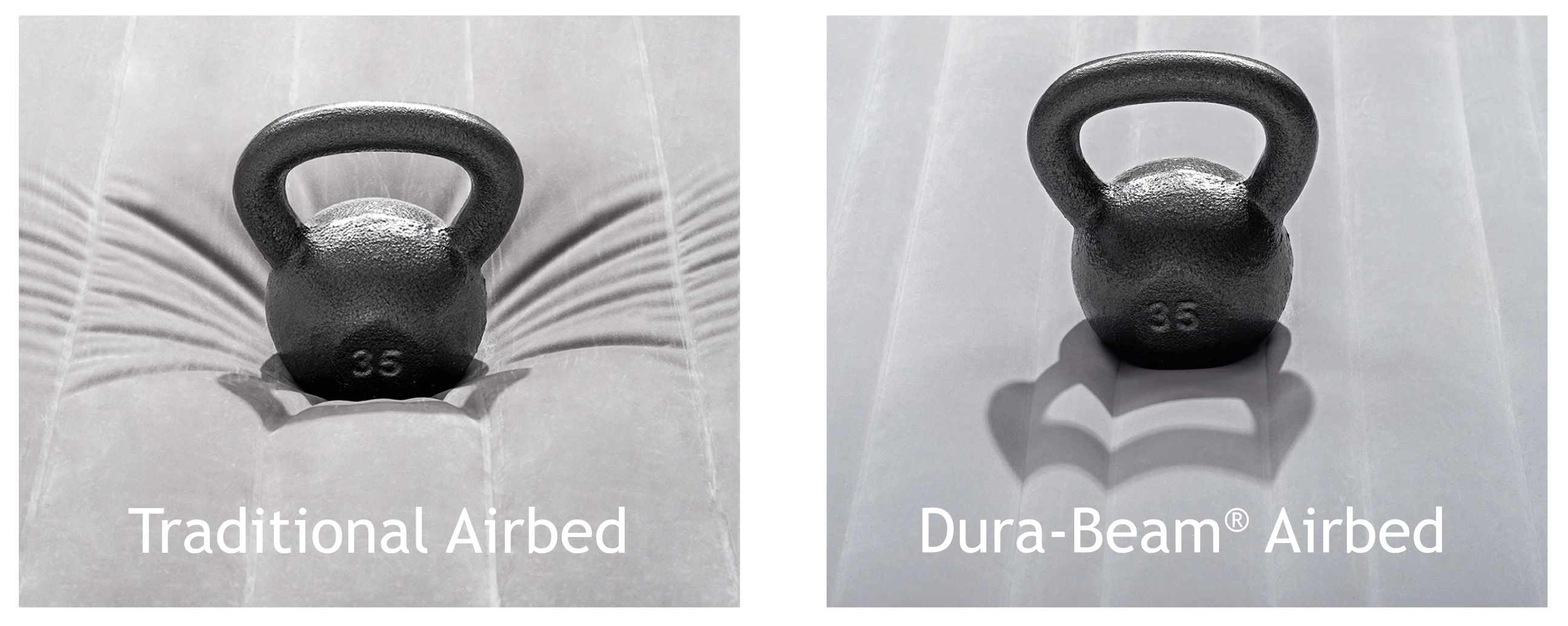 Насладете се на комфорта на стабилно и същевременно удобно надуваемо легло, подходящо за гости и за почивка. Благодарение на технологията Fiber-Tech с полиестерни влакна, матракът има по-висока твърдост, по-дълъг живот и равномерно разпределя теглото по цялата повърхност. Вълнообразната повърхност и камерната конструкция помагат да се поддържа правилната позиция на гръбначния стълб и намаляват риска от болки в гърба и врата.