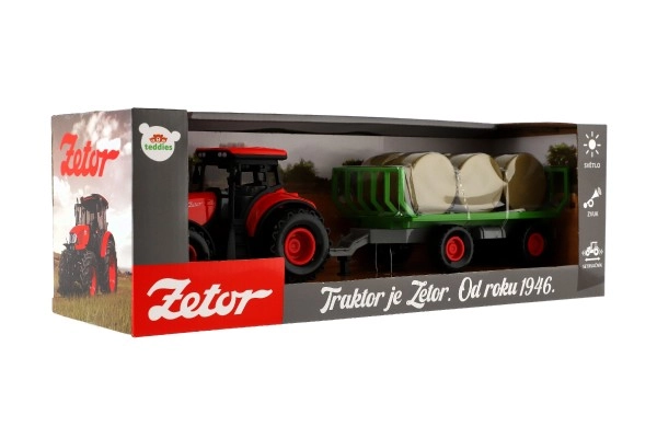 Този красив модел трактор Zetor носи часове забавление за всяко дете. С отделяемото ремарке могат да се симулират различни земеделски дейности и веселие във фермата. Благодарение на светлинните ефекти и реалните звуци децата ще се насладят на автентичната атмосфера на фермерството.
