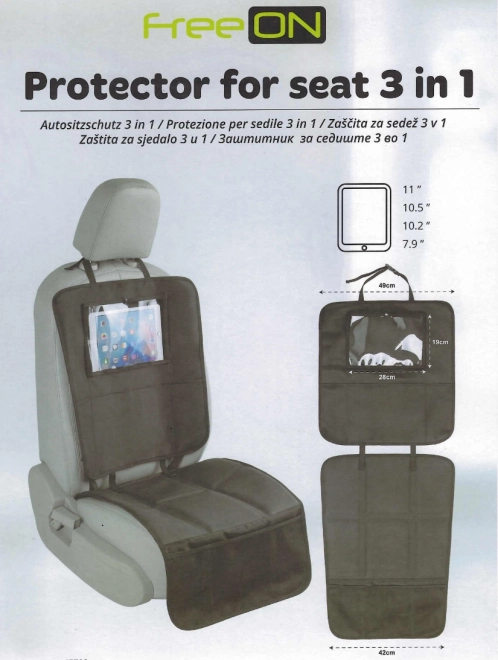 Автоседалката с предпазител и органайзер 3-в-1 е проектирана да предлага цялостна защита и практичност. Предпазва седалката на автомобила от отпечатъци и замърсявания благодарение на издръжлив материал, който се почиства лесно.