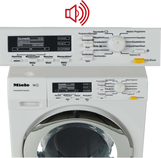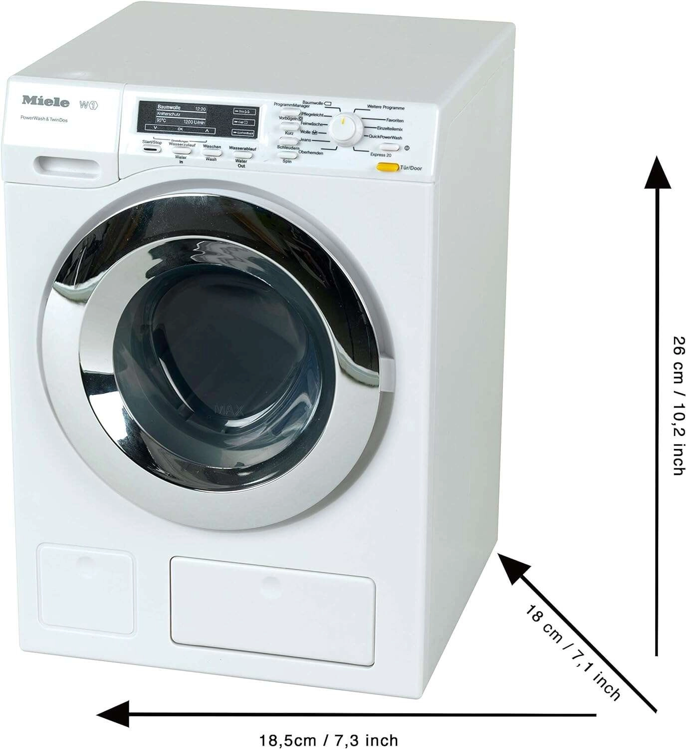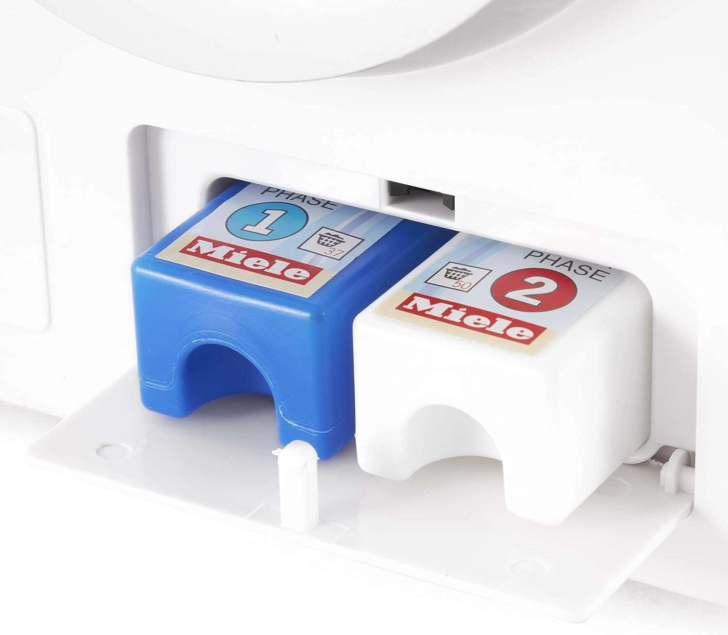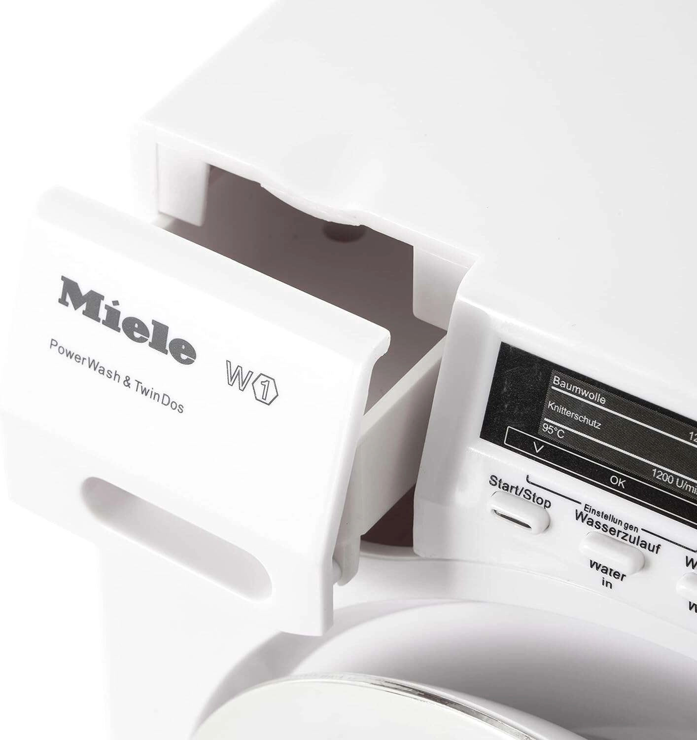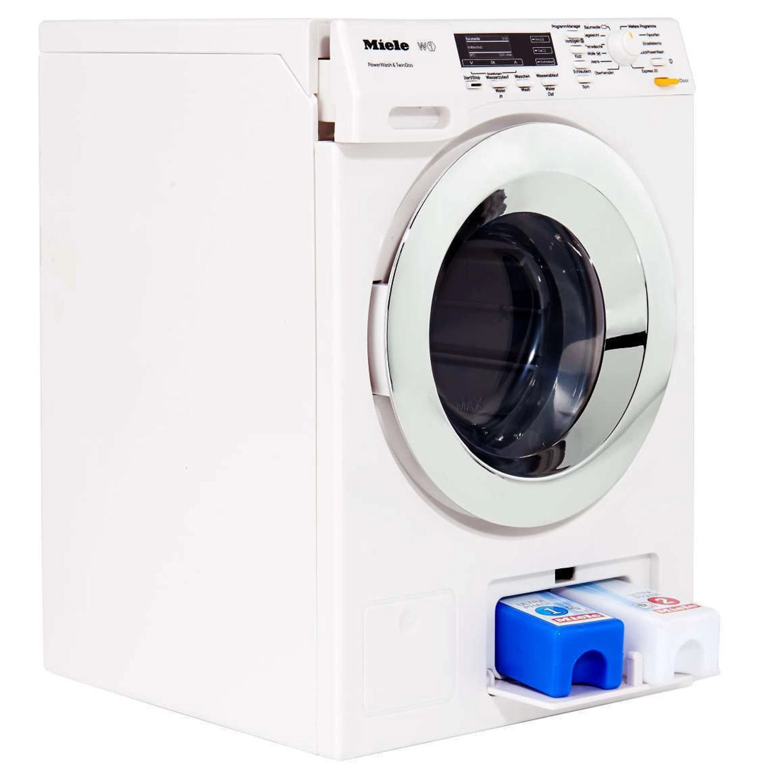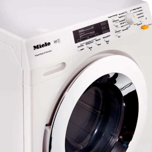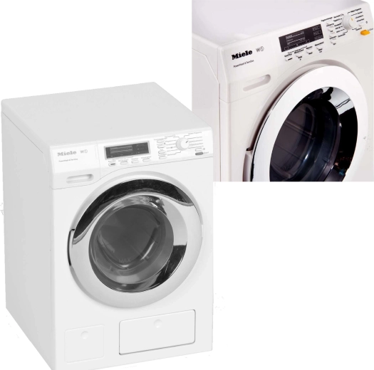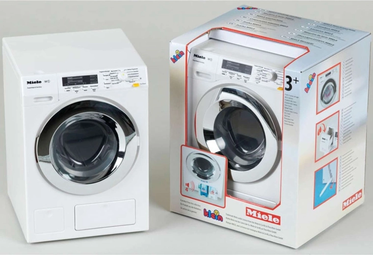 Реалистична детска пералня MIELE от марката KLEIN носи на децата автентично забавление при наподобяване на възрастните. Предлага въртящ се барабан, 4 перални цикъла, LED индикация и възможност за пране с вода и без вода. Благодарение на звуковите ефекти и функционалното чекмедже за вода играта е още по-правдоподобна и безопасна за деца от 3 години.