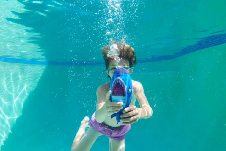 Благодарение на атрактивния дизайн в сини нюанси и изразителния „акулски“ вид, децата веднага ще заобичат играчката. Тя е идеална за групови игри в басейна, подавания под вода или състезания по обсег и точност. Без батерии, без сложна поддръжка – само чисто водно забавление.