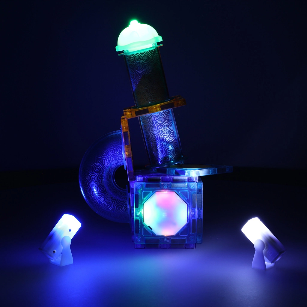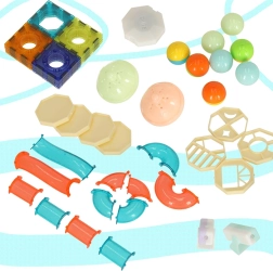 Създайте за децата завладяващ свят от топчета, изпълнен със светлина и движение! Този комплект магнитни блокчета комбинира лесно свързване с прозрачни елементи и светещи части за ефектен топчест тобоган, който развива фината моторика, пространственото въображение и логическото мислене. Светещите топчета и рефлектори превръщат всяко спускане в зрелищно светлинно представление – дори и на тъмно.