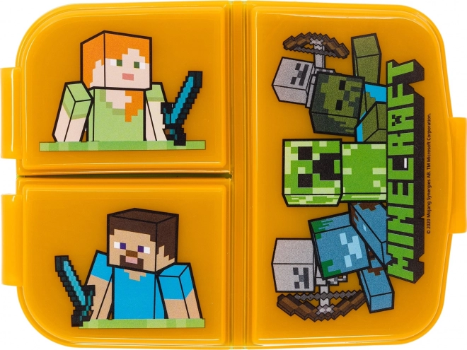 Зарадвайте децата със стилна кутия за закуски с мотиви от любимата игра MINECRAFT. Благодарение на трите отделни отделения лесно ще разделите печива, плодове и дребни закуски, така че всичко да остане свежо и подредено. Компактните размери се побират удобно в ученическа чанта или раничка.